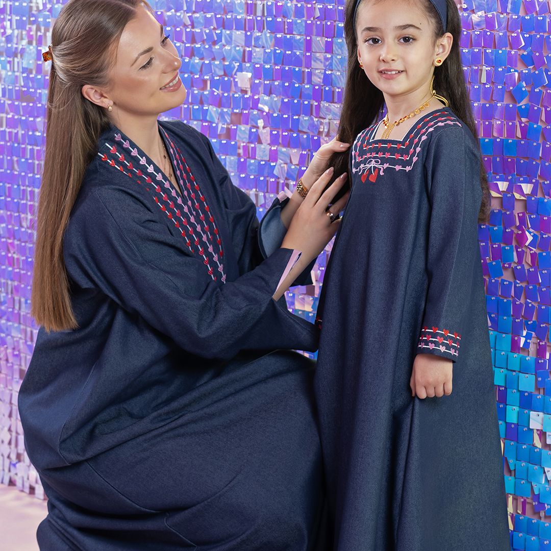 Our soft denim jalabiya for ladies is designed with a cute and charming touch, while keeping comfort at the heart of every detail. Made to feel gentle on the skin and allow easy movement, it’s ideal for everyday wear and relaxed moments. Each piece is carefully finished with delicate embroidery, adding personality and charm without affecting comfort. More than just its look, this jalabiya is created to be worn, loved, and enjoyed—just as much as the little ones’ version.