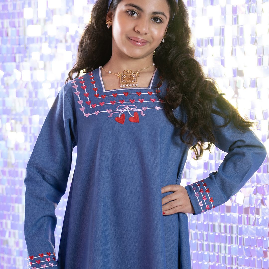 Our soft denim jalabiya for kids is designed with a cute and charming look, while keeping comfort at the heart of every detail. It feels gentle on the skin and allows easy movement, making it ideal for everyday wear.