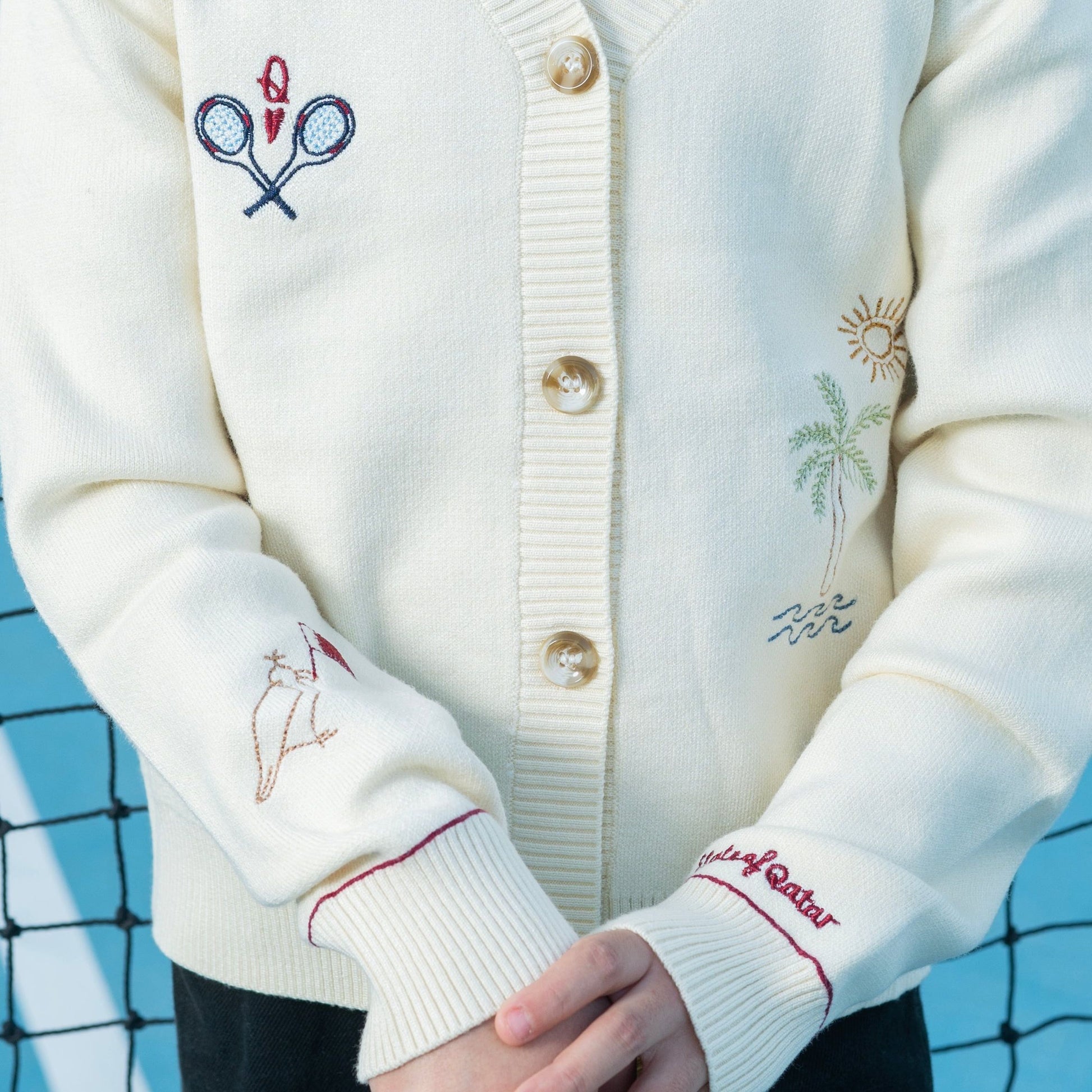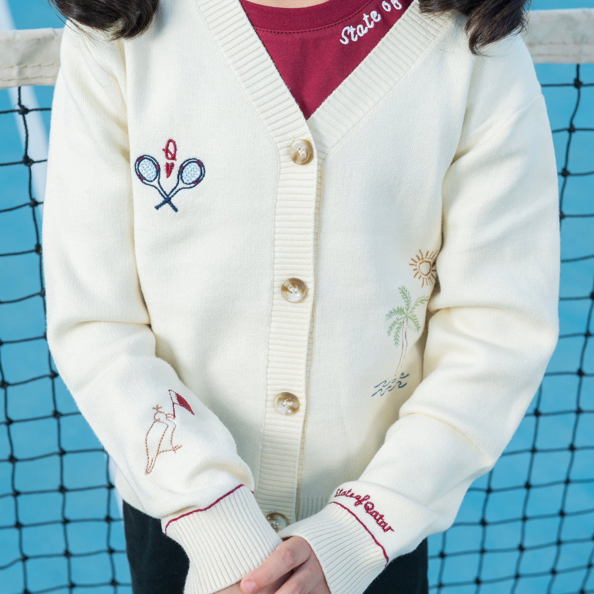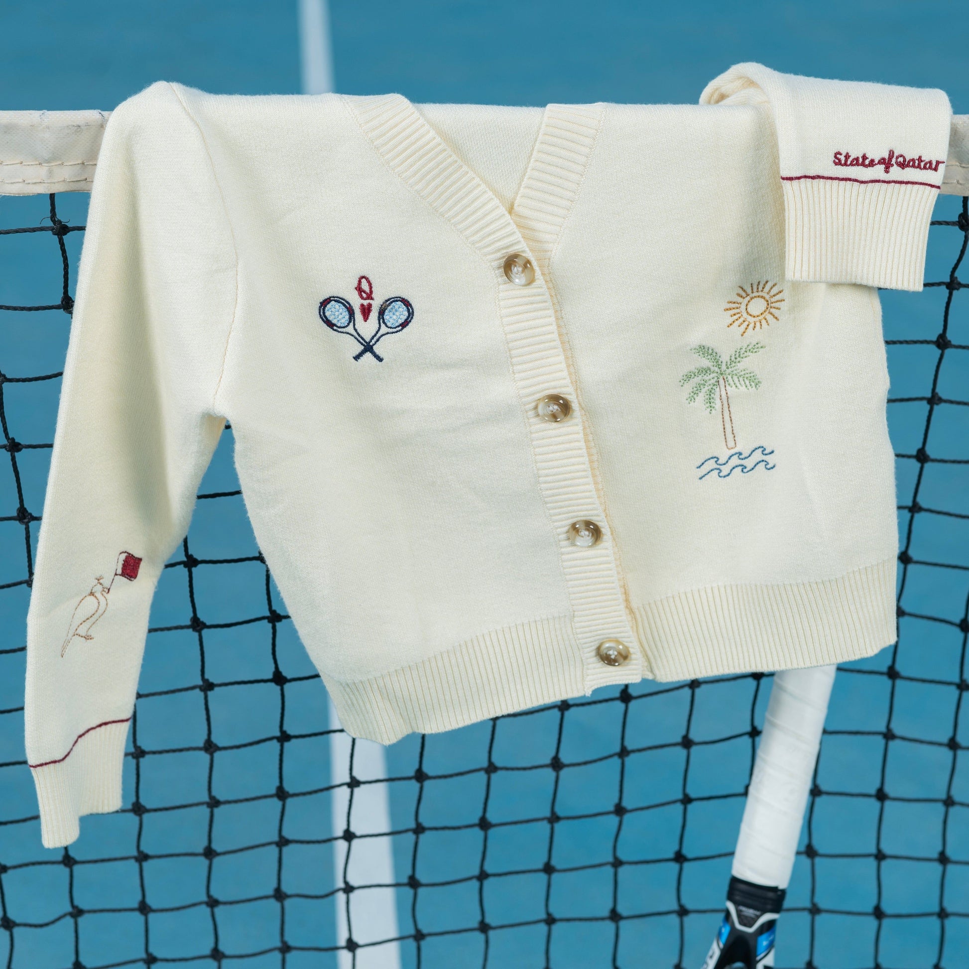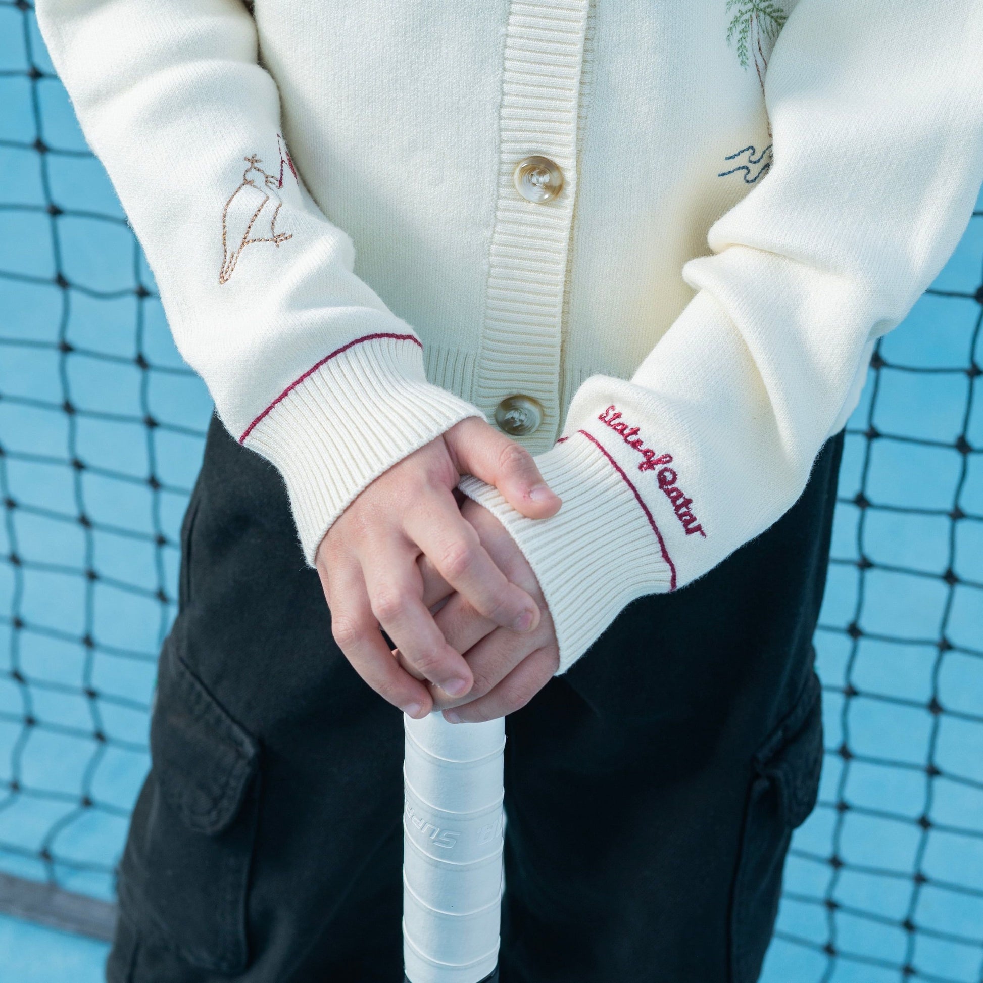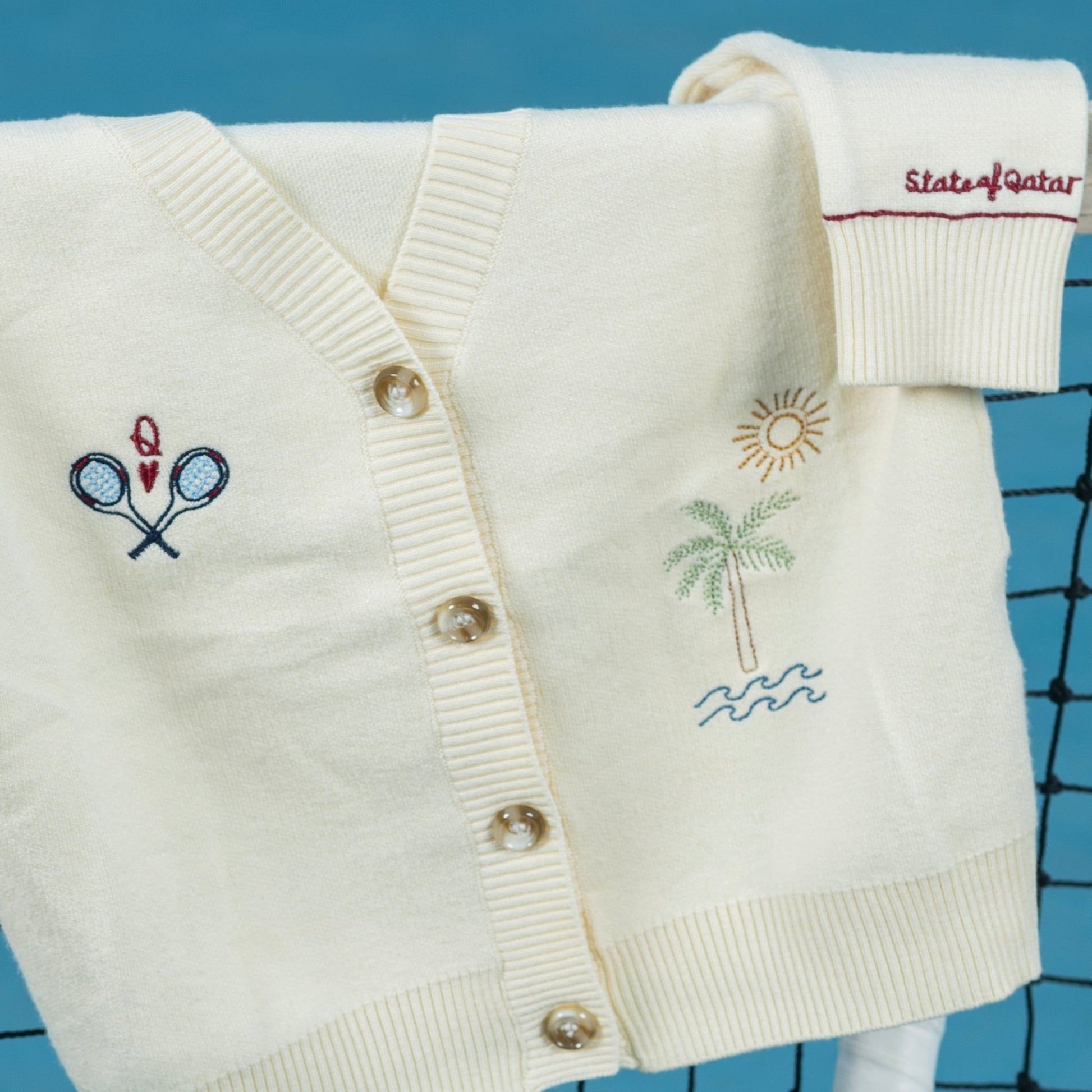 • Elegant embroidery featuring iconic designs: palm, sun & waves, Qatar flag, and tennis rackets